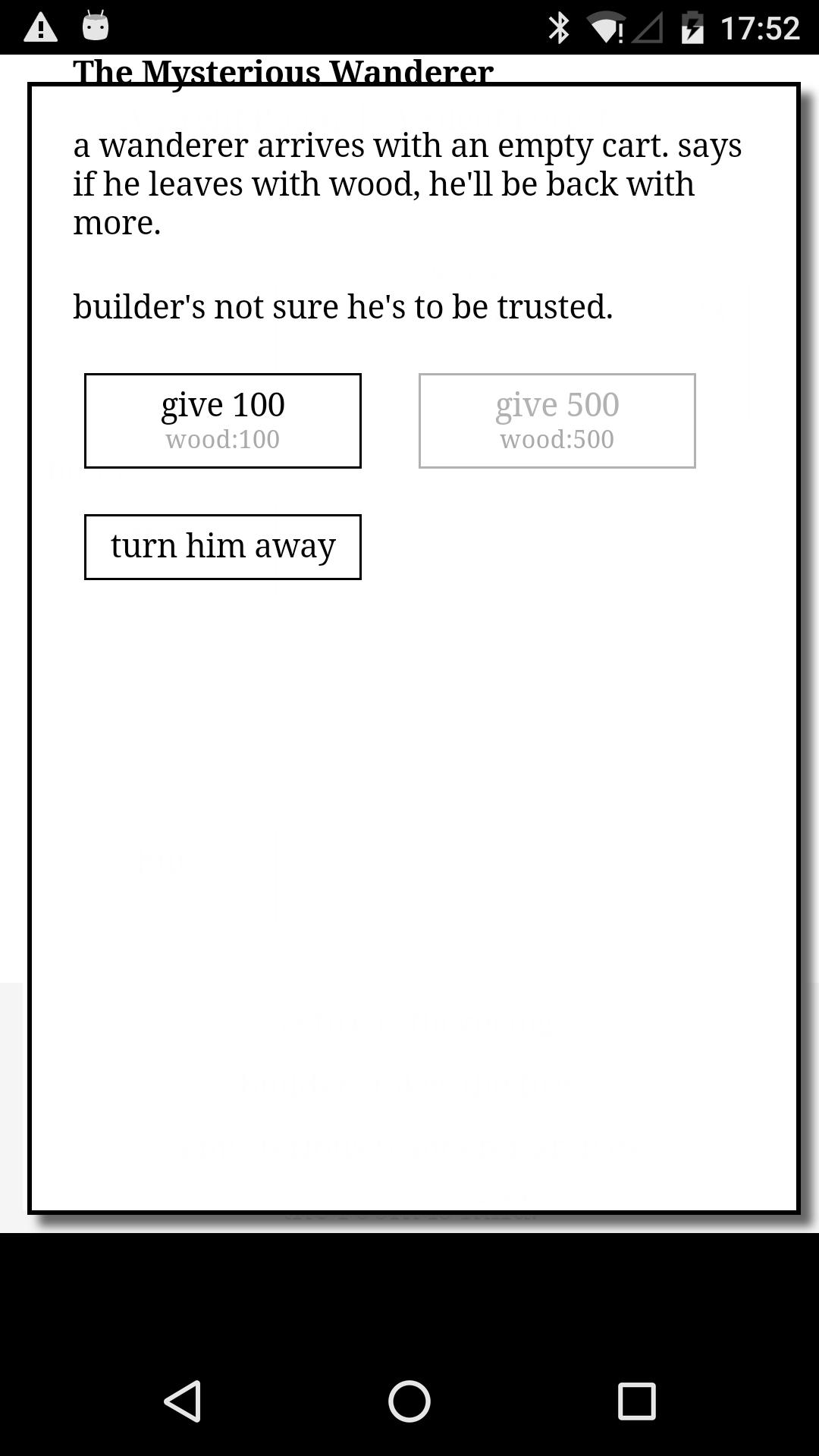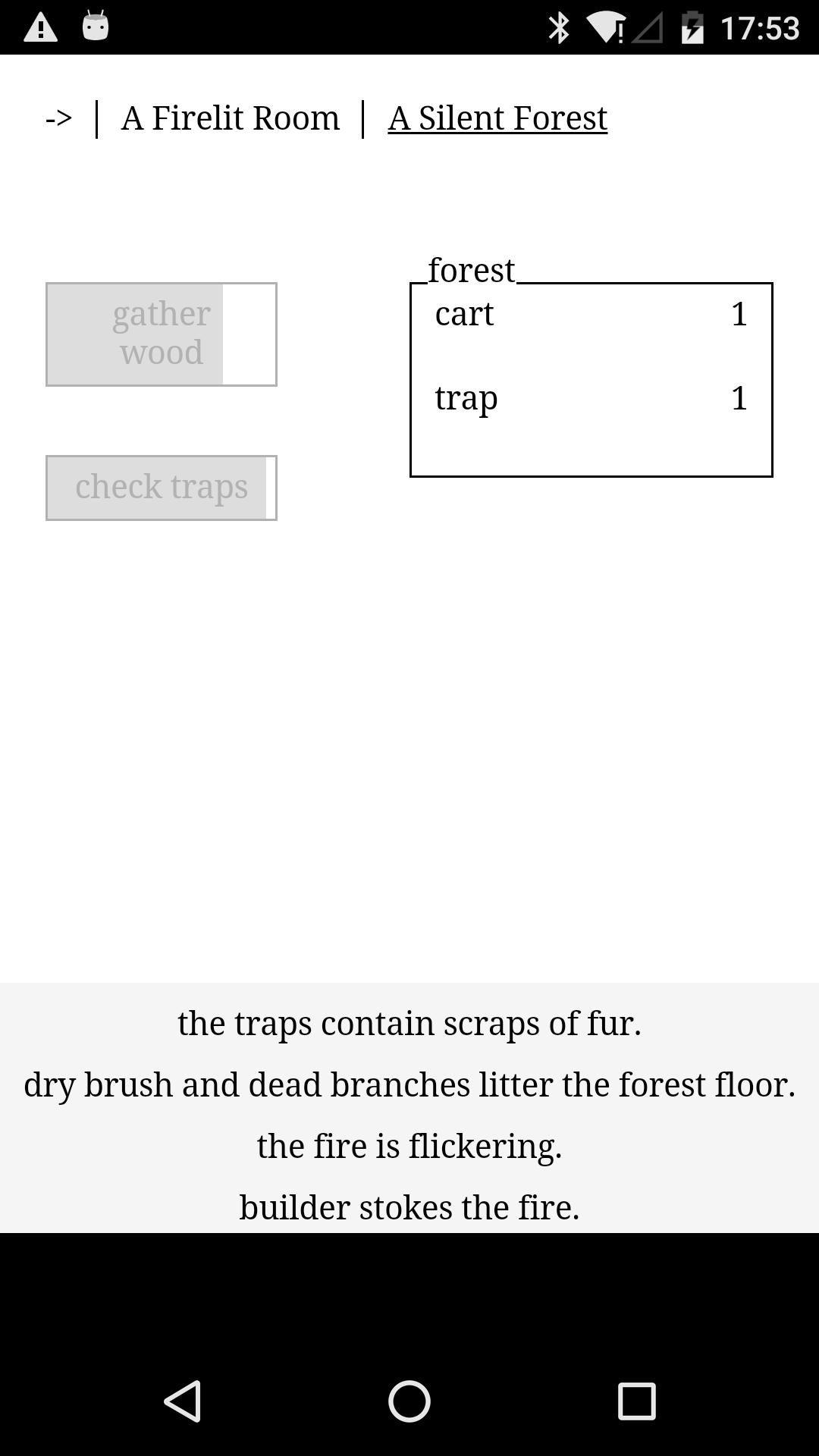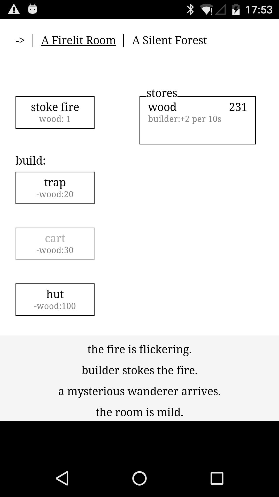 C'est un jeu textuel, ce que vous pouvez faire au début, c'est Stoke Fire, et lorsque la pièce se réchauffe, vous pouvez faire plus de choses comme la collecte de ressources, même pour une aventure sur la carte. Vous rencontrerez également des gens et des événements dans vos aventures. Quelle est l'histoire en fonction de votre choix.